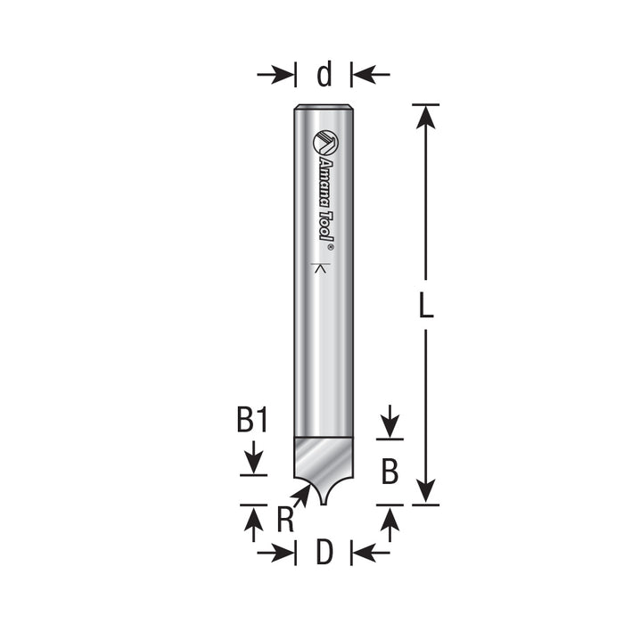 56125-M Solid Carbide Point Cutting Roundover 3mm Radius x 6mm Dia x 8mm x 6mm Shank Router Bit